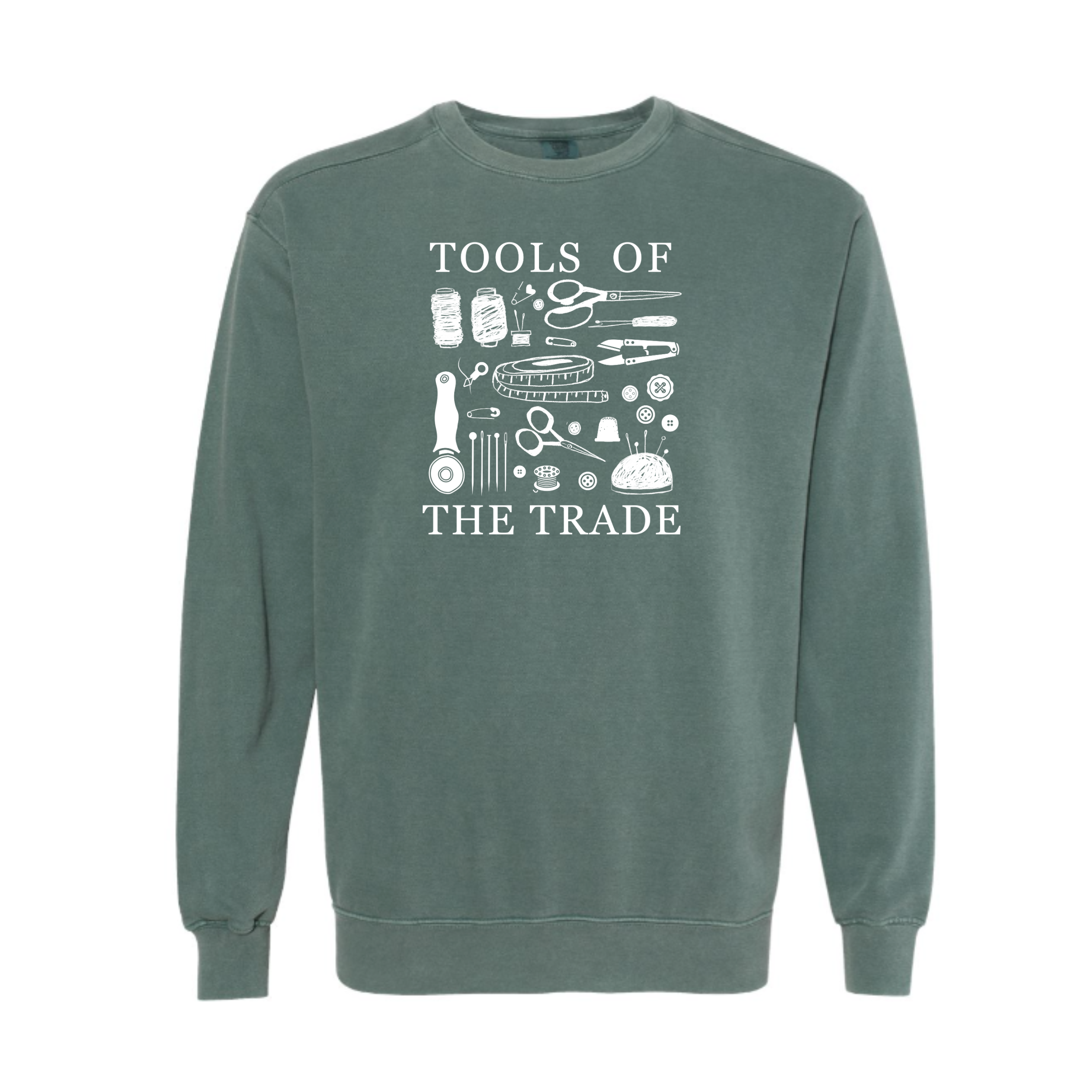 Show off your quilting pride and keep cozy with the "Tools of the Trade" vintage washed crew —perfect for any seamstress!